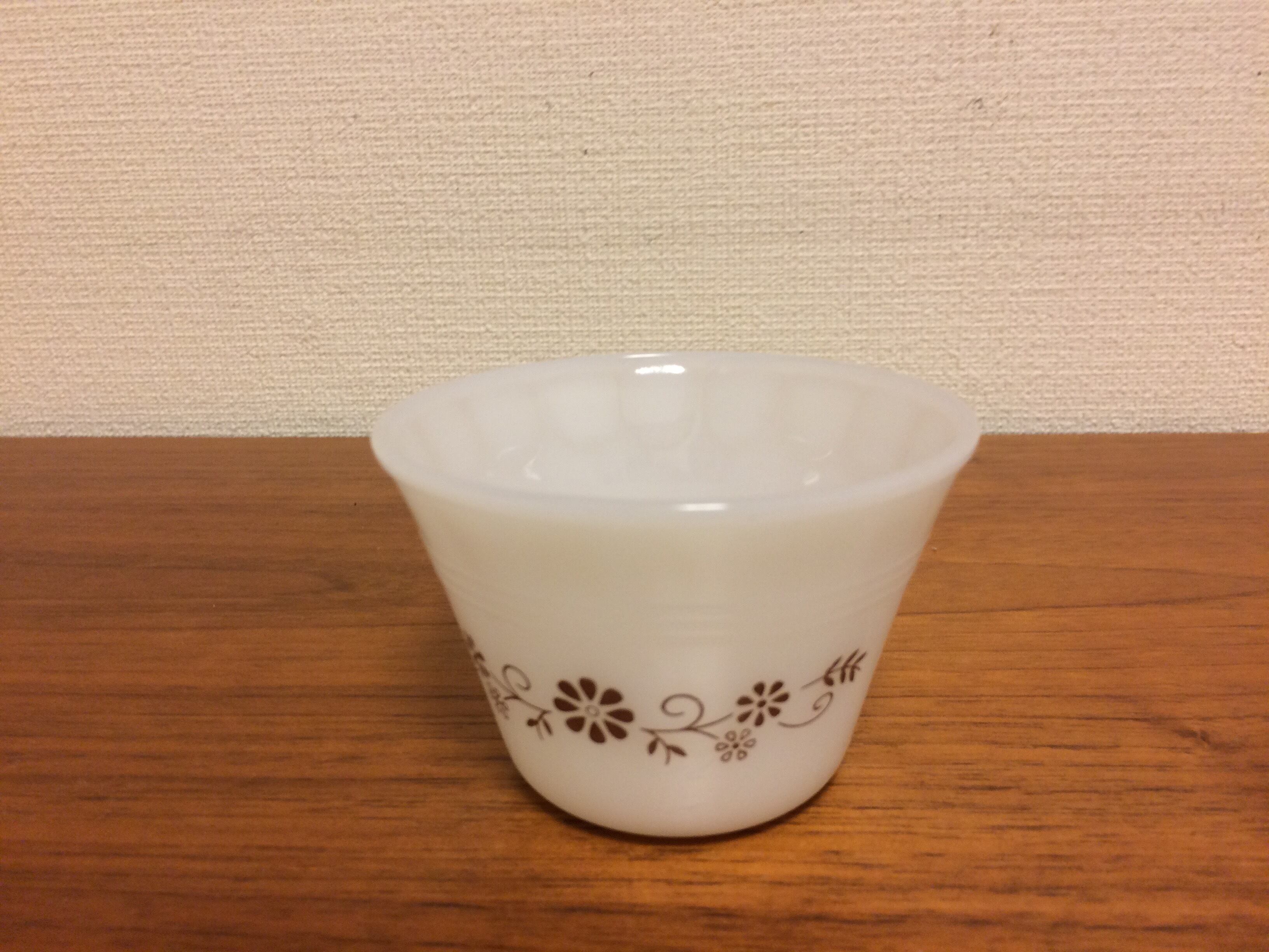 ミルクガラスにブラウンで一筆書きのような細いラインと花柄がナチュラルなイメージです。